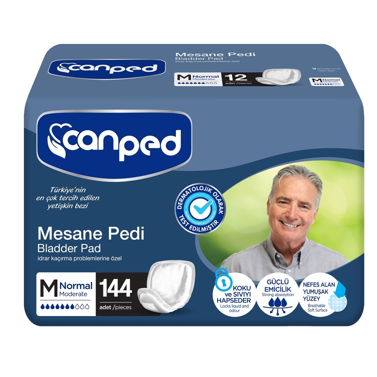 Canped Mesane Pedi, erkek anatomisine uygun yapısı ile idrar kaçırma problemlerinde erkeklerin kendilerini güvende hissetmelerini saÄŸlar.