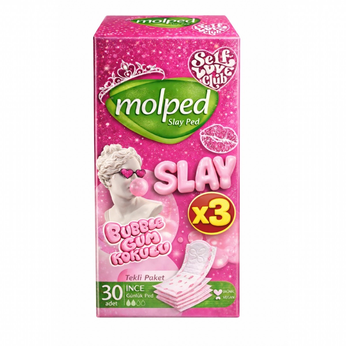 Regl dönemini ve günlük rutinini sıradanlıktan çıkar, her an kendini ‘Slay’ hisset! Benzersiz bubble gum kokusu, pembe üst yüzeyi ve özel tasarlanmış ambalajıyla Slay Ped, regl döneminde konforlu ve cool bir deneyim sunar.